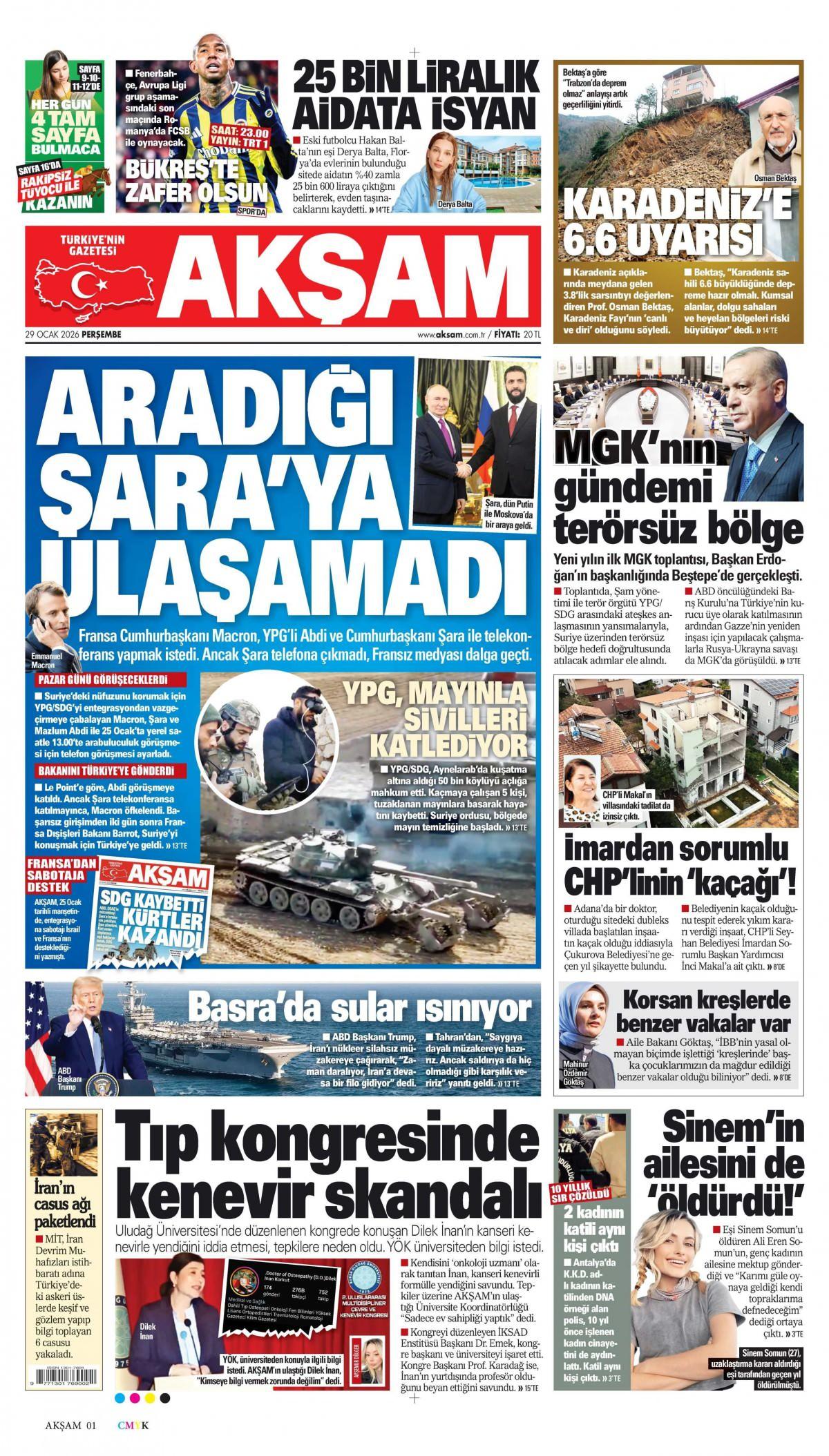 Akşam Gazetesi 30 Ocak 2026 Günü Manşeti