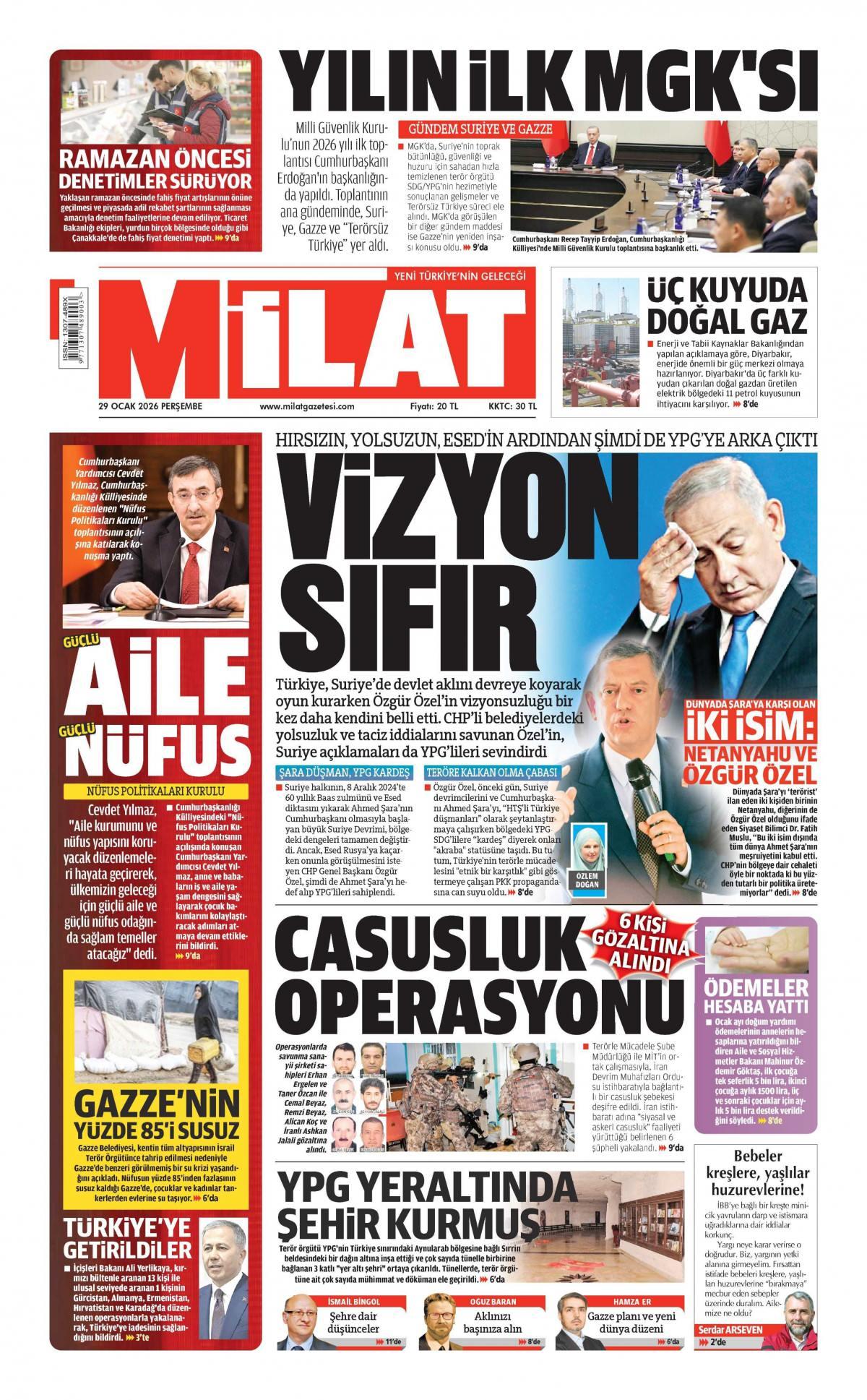 Milat Gazetesi 30 Ocak 2026 Günü Manşeti